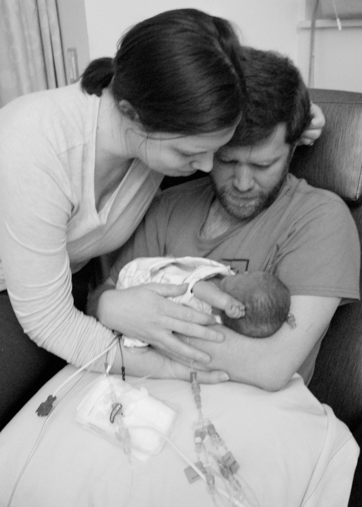 The room became eerily quiet without the loud pulsating of the ventilator. The NP tapped my shoulder. When I opened my eyes, I was staring at the most beautiful face that was finally free of tape and tubes and was peaceful in her daddy’s arms. For the first time, I could see Ellie’s lips and nose and I could barely catch my breath from her beauty and our pain. Adam laid Ellie in my arms next and it is there where her heart stopped beating and she left her earthly body. I held tightly to her for a long time as her body began to lose its warmth. After placing a stethoscope on her little chest, her NP quietly said “she’s gone.”